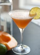 2. Pour into a chilled martini glass and garnish with a lime round.
