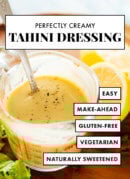 I shared my go-to tahini sauce recipe a couple of months ago (have you tried it yet?). This salad dressing is similar but designed specifically for drizzling on salads, rather than using as a dipping sauce or on sandwiches.