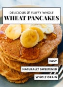 These whole wheat pancakes are delicious and fluffy, with a hint of cinnamon. They’re naturally sweetened with maple syrup instead of sugar. So good!